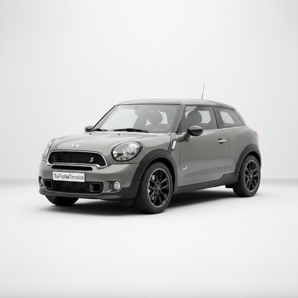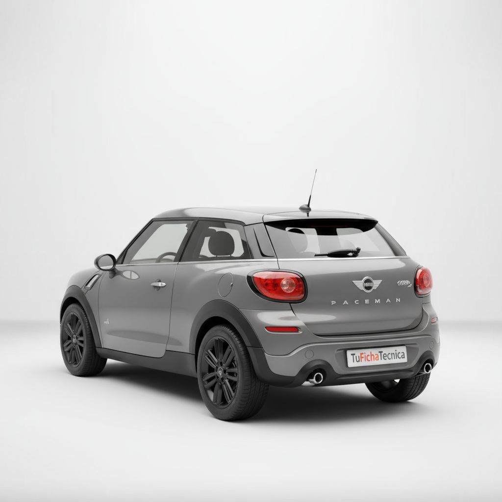 The design of the MINI Paceman Cooper S is, without a doubt, one of its strongest and most distinctive points. With its 4114 mm length, 1786 mm width, and 1518 mm height, it presents a three-door coupé silhouette that clearly differentiates it from other MINI models. The muscular lines, pronounced wheel arches, and sloping roof give it a robust and sporty presence. Specific details of the Cooper S version, such as the 17-inch wheels with 205/55 R17 tires, reinforce its dynamic character. Inside, the four-seater configuration offers a cozy and sporty atmosphere, with the quality of finishes and characteristic MINI design, where every element is designed to evoke a sense of exclusivity and fun.